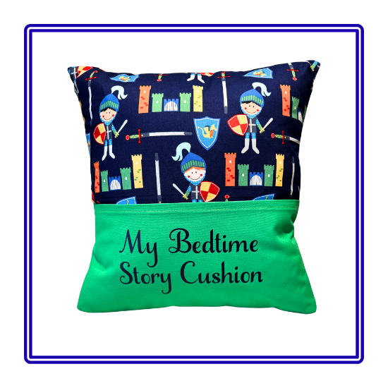 Encourage a love for books and reading with this stunning and practical gift! This handmade, knight-themed Story Cushion comes with a free book, free personalisation and free UK postage! It also comes with the option to add in a great value Gift Pack and is certain to appeal to all knights and dragons fans!