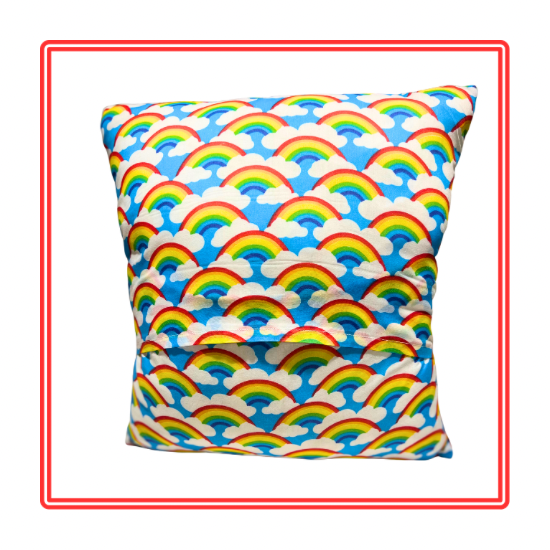 This ‘Rainbows’ book pillow features a bright and colourful rainbow print and a convenient front pocket - designed to hold a cherished book or a new one every day. Let me know how old the child is and I will include a free, age-appropriate book to add to their collection!