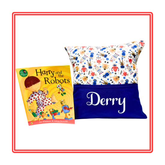 Encourage a love for books and reading with this fun and practical gift! This handmade, robot-themed Story Cushion comes with a free book, free personalisation and free UK postage! It also comes with the option to add in a great value Gift Pack and is certain to appeal to all!